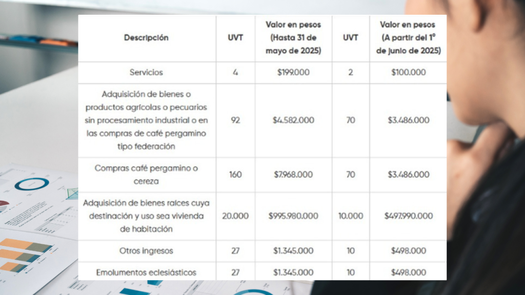 Nos permitimos informarle que, conforme al nuevo decreto 0572 del 28 de Mayo de 2025 emitido por el Gobierno Nacional de Colombia, se han realizado modificaciones en los porcentajes de retención aplicables, los cuales entraron en vigencia a partir del 1 de Junio de 2025.